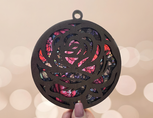 Round Rose Sun Catcher – Stained Glass Style Floral Window Hanging | Rainbow Light Catcher | Boho Flower Decor