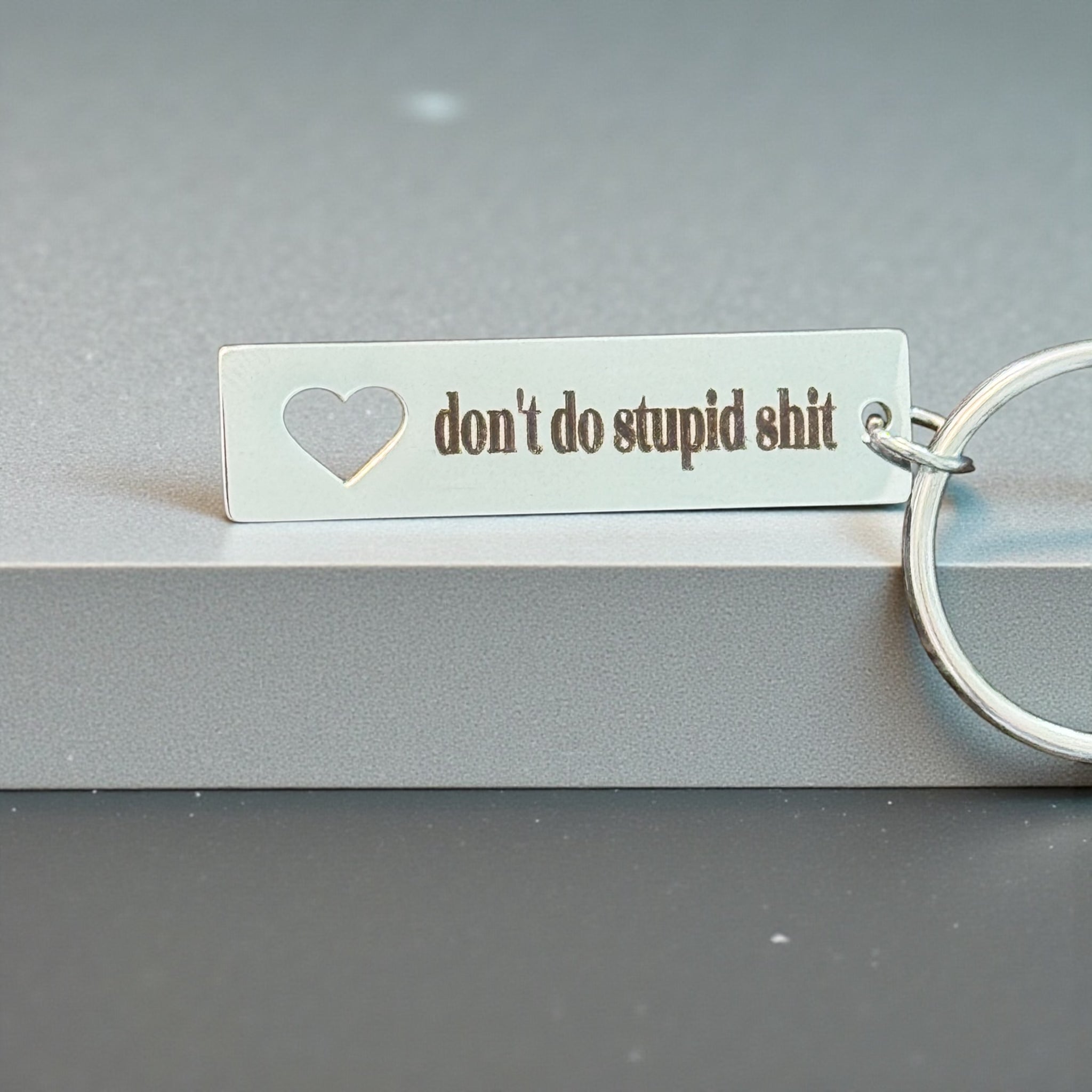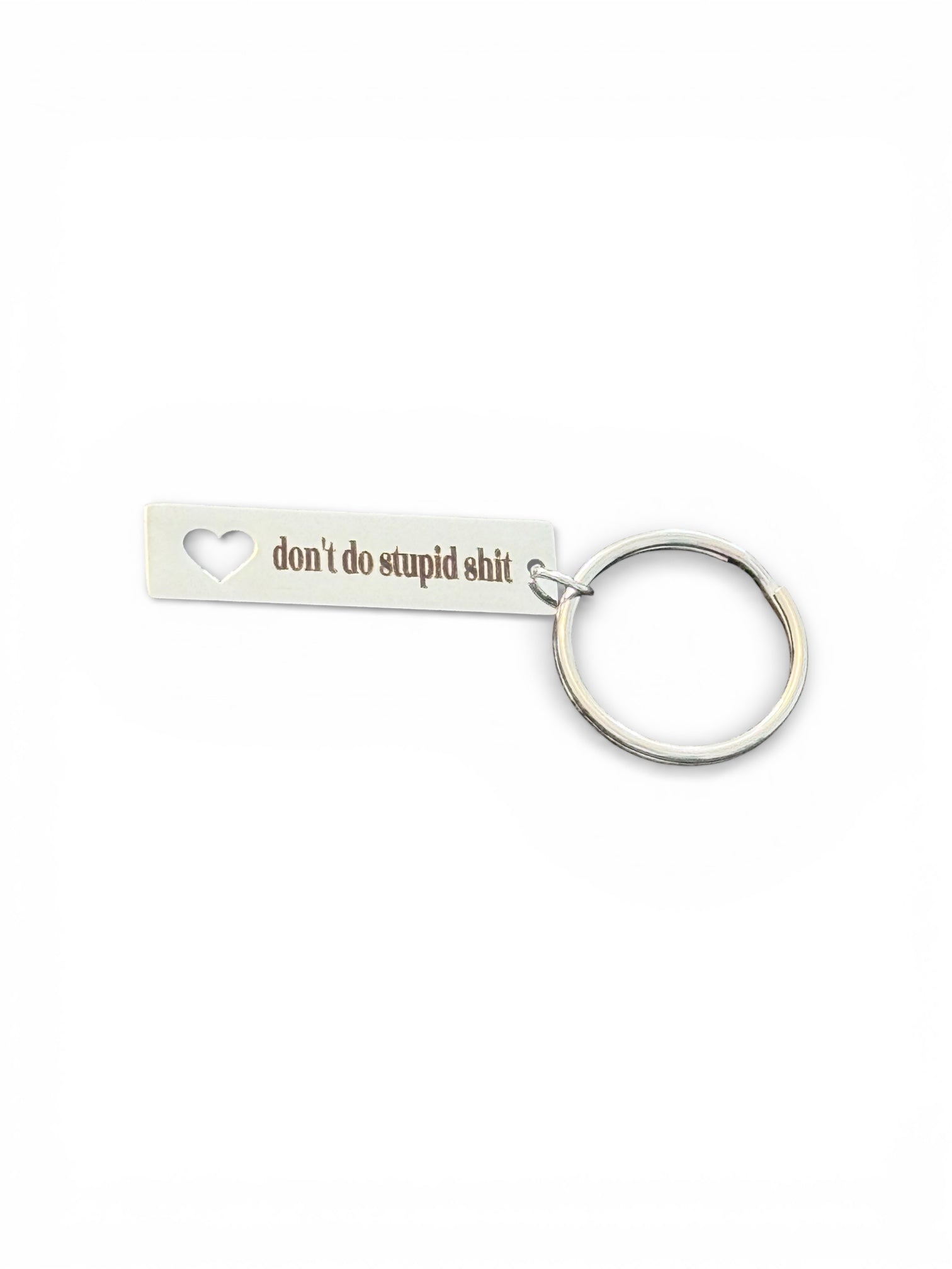 Add a little humor to your everyday carry with this engraved metal keychain that says what everyone’s thinking: “Don’t Do Stupid Sh*t.”