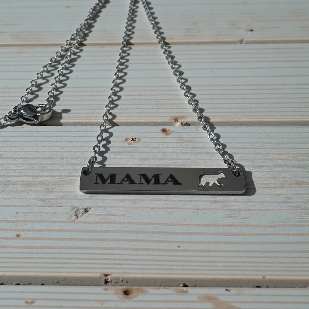 Celebrate the strength, love, and heart of motherhood with this Mama Bear Bar Necklace, featuring a sleek engraved design and a meaningful bear cutout silhouette. Simple, timeless, and full of love — this necklace makes the perfect everyday piece or heartfelt gift.